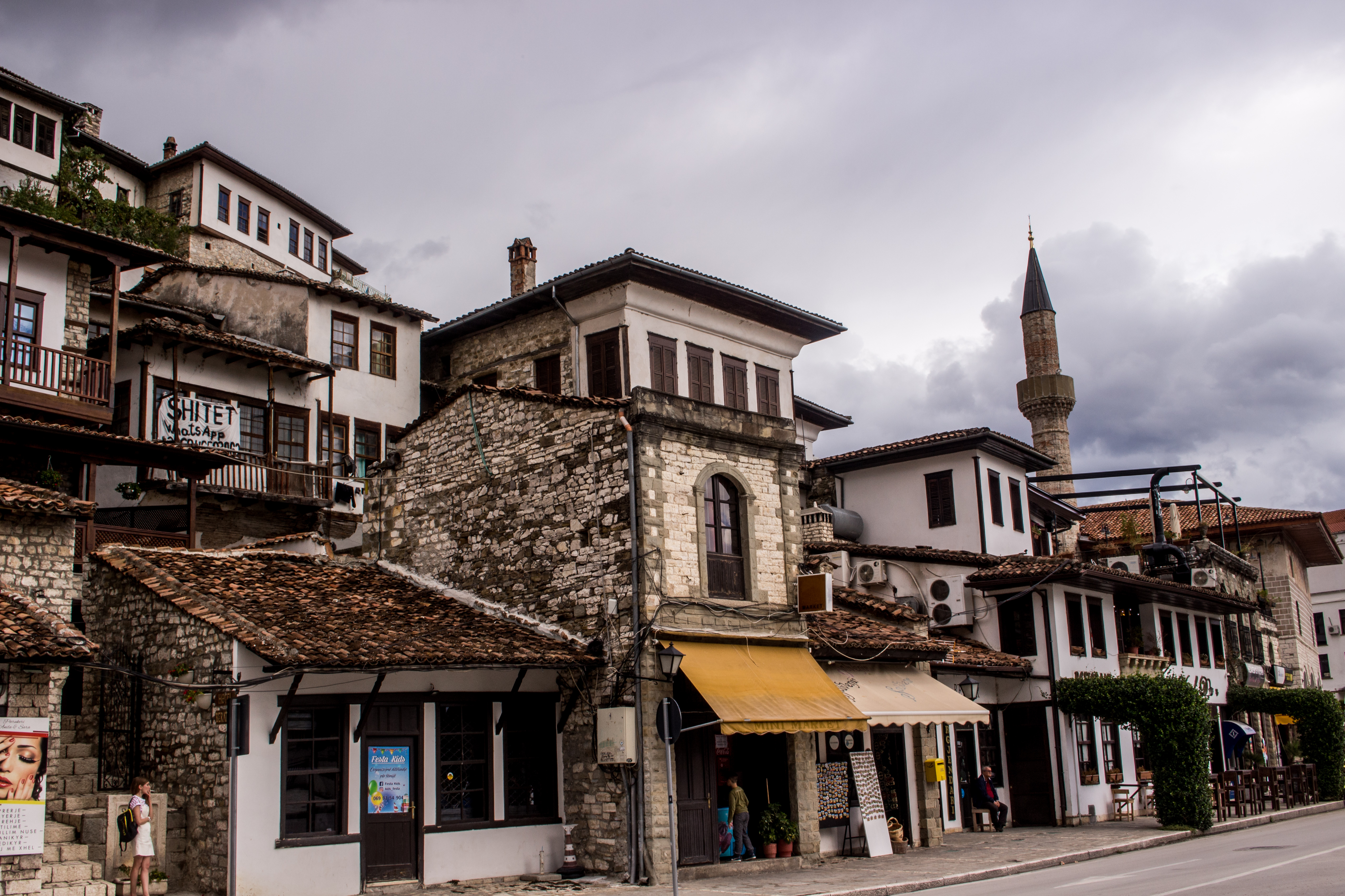 I took a steep walking path straight up the hill to enter the castle. Apparently it was not the official way, but the shortest route according to my map. The first thing I saw after entering through a gate in the ruined wall was the colourful sight of Albanian carpets spread out all along the wall. The first ones I saw, but definitely not the last. In the end I even took one home, holding it on the airplane as it did not really fit into my small backpack. After getting my breath back from the steep climb and having enjoyed the view over the river and the rest of the city, it was time to discover the castle. It really is an interesting mixture, the old houses, churches and the ruin of a large mosque.