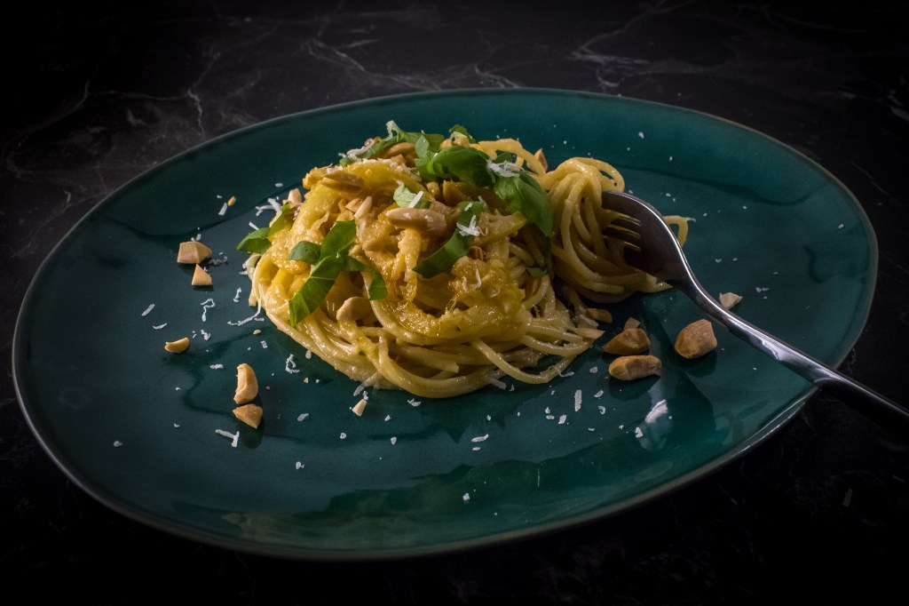 These two plants also happen to be favourites of mine to cook with. Simply because of their flavour, but also because of their versatility which means you can use them in both sweet and savoury dishes, like this lemon and almond spaghetti. I have always loved lemon pasta and this is one of several different ways in which I like to prepare it.